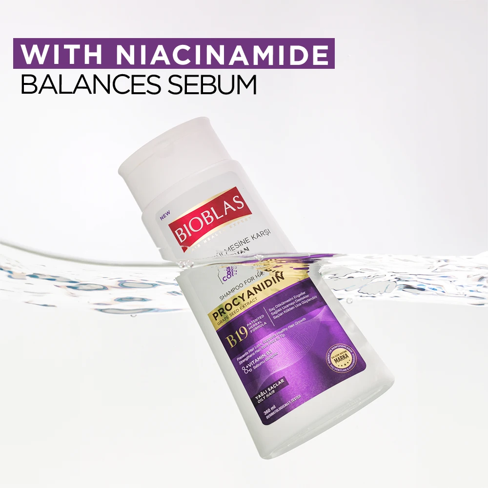 It is effective against hair loss. Thanks to its formula enriched with Herbal Serum, it helps prevent hair loss, nourishing the hair. PROCYANIDIN is a strong antioxidant derived from grape seeds that protect the hair and scalp, supporting strength and health. The special formula containing niacinamide balances sebum production in the scalp and prevents excessive oiliness.